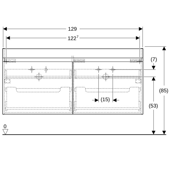 Geberit Renova Plan Unterschrank für Doppelmöbelwaschtisch, mit zwei Schubladen und zwei Innenschubladen: 129x60.5x47.3cm, weiß W908804