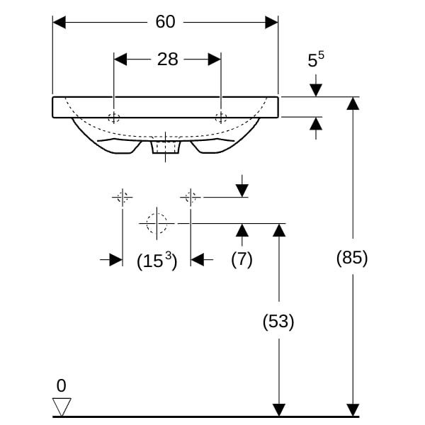 Geberit Waschtisch iCon Light 60x48cm, Hahnloch mittig, mit Überlauf, weiß W50735
