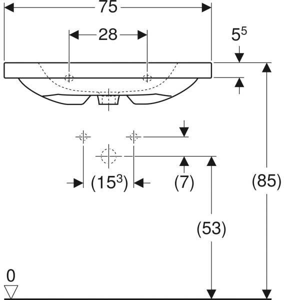 Geberit Waschtisch iCon Light 75x48cm, ohne Hahnloch, mit Überlauf, mit Ablagefläche, weiß