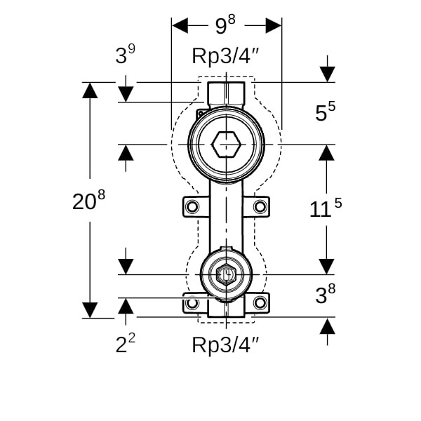 Geberit Wasserzählerstrecke Rp 3/4, mit UP-Kugelhahn