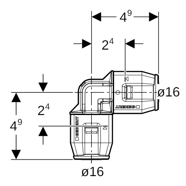 Geberit Winkel PushFit Ø 16 mm, 90Grad, PVDF