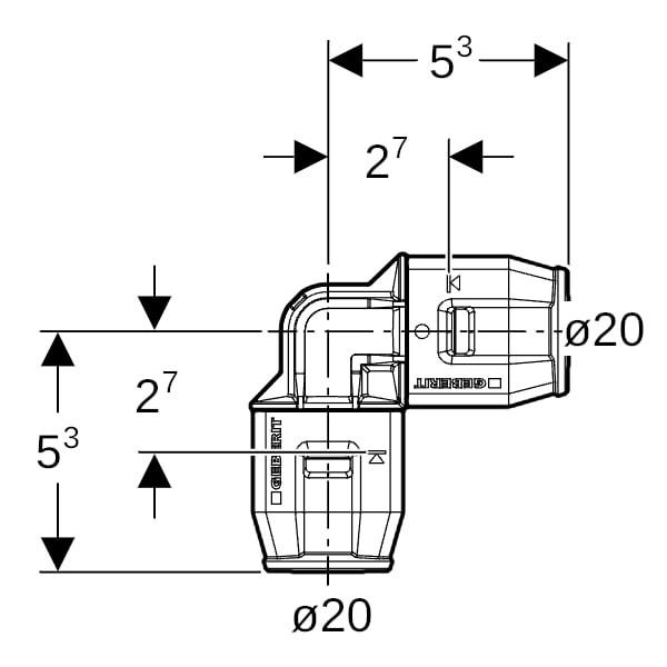 Geberit Winkel PushFit Ø 20 mm, 90Grad, PVDF