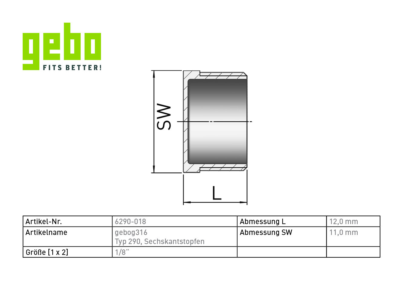 Gebo Edelstahl-Gewindefittings - 6 kt. Stopfen 1/8"