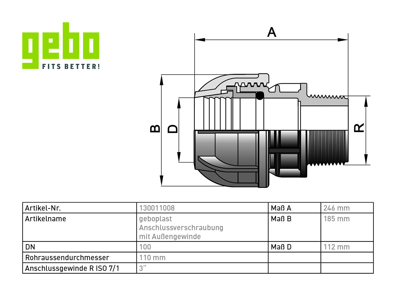 Gebo Plast Anschlussverschraubung 110 x 3", mit AG