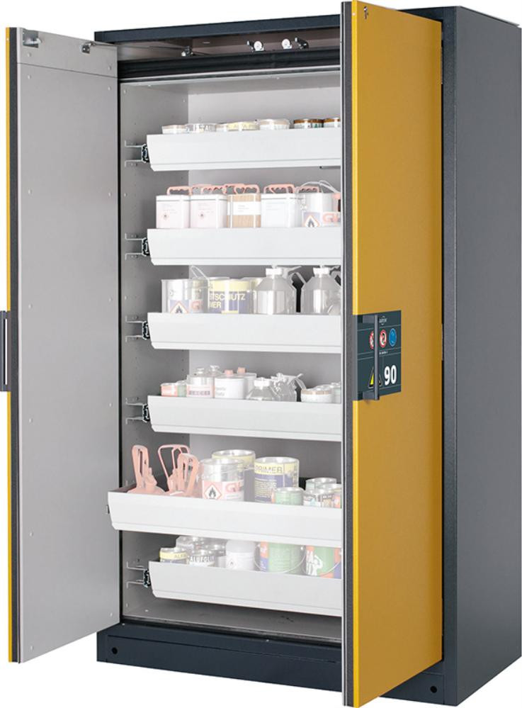 Gefahrstoffschrank Q-CLASSIC-90, mit 6 Auszugswannen