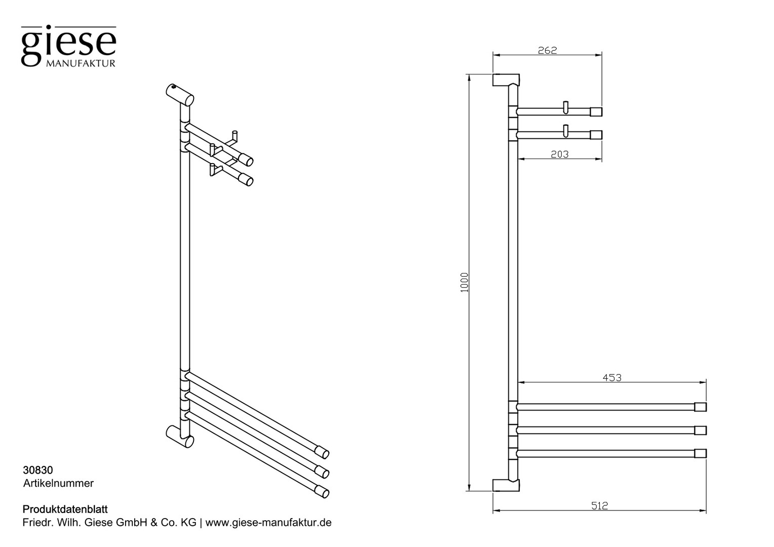 Giese Badetuchhalter Bader einzeln schwenkbar, 512x1000x262mm, schwarz matt
