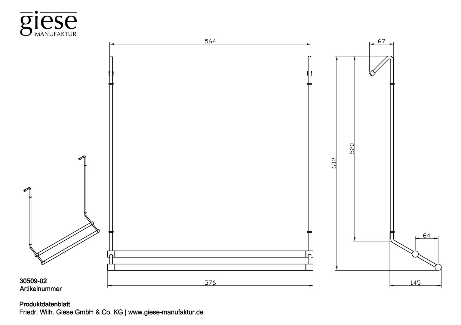 Giese Badetuchhalter Server mit 2 Stangen, 576x602x67mm, verchromt W359226