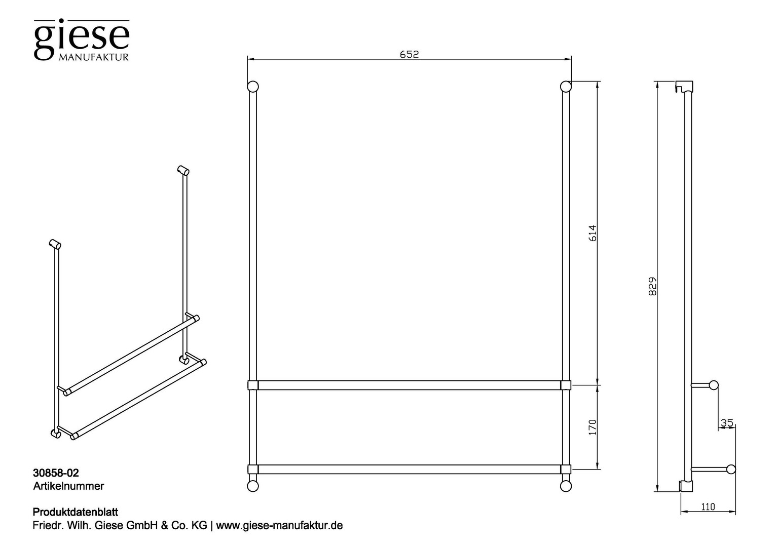 Giese Badetuchhalter Server mit 2 Stangen, 652x829x110mm, verchromt W359232