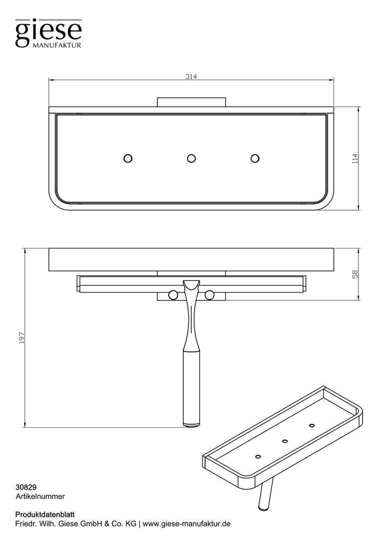 Giese Duschkonsole 405x120x40mm, seitlicher Haken, schwarz matt