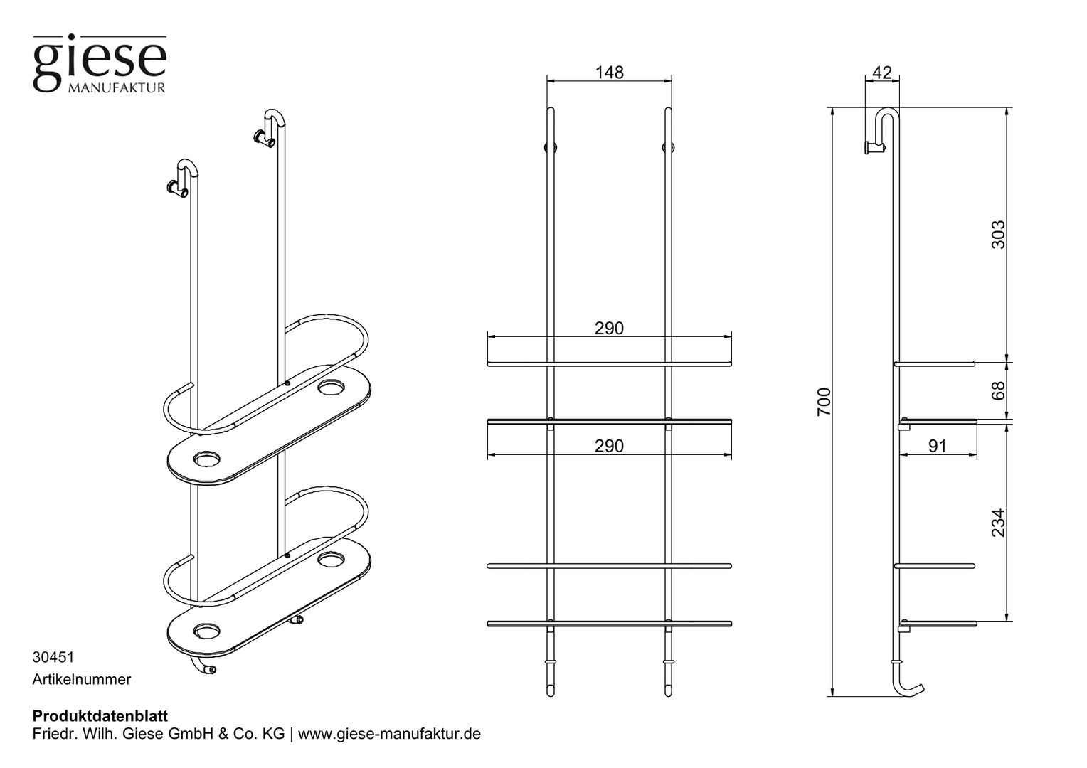 Giese Duschkorb Bodyguard 290x700x42mm, für Glaswand 6/8mm, mit Halter für Rasierer, schwarz matt