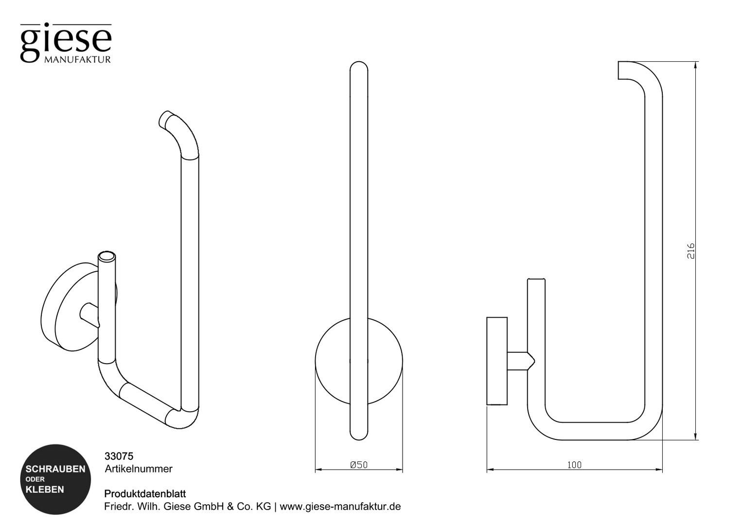 Giese Ersatzpapierhalter Gifix Uno für 2x Rollen, 100x216mm, verchromt W359589