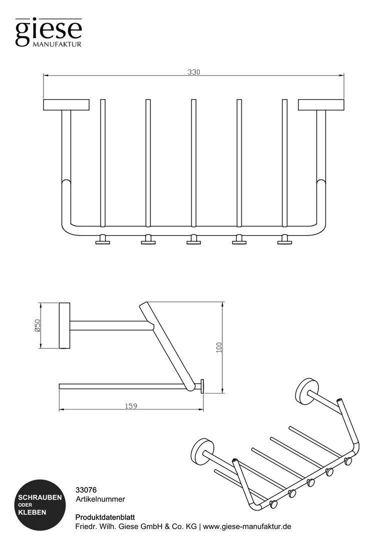 Giese Gästehandtuchkorb mit 5 Haken, 330x100x159mm, verchromt W359501