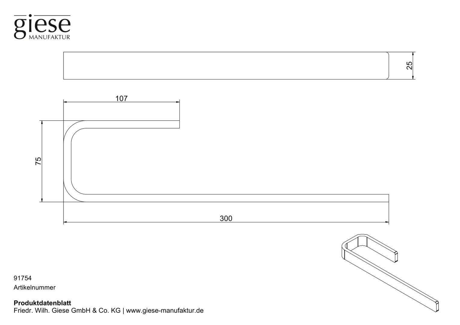 Giese Handtuchhalter starr, 400mm, Montage links/rechts für Badmöbel, verchromt W359464