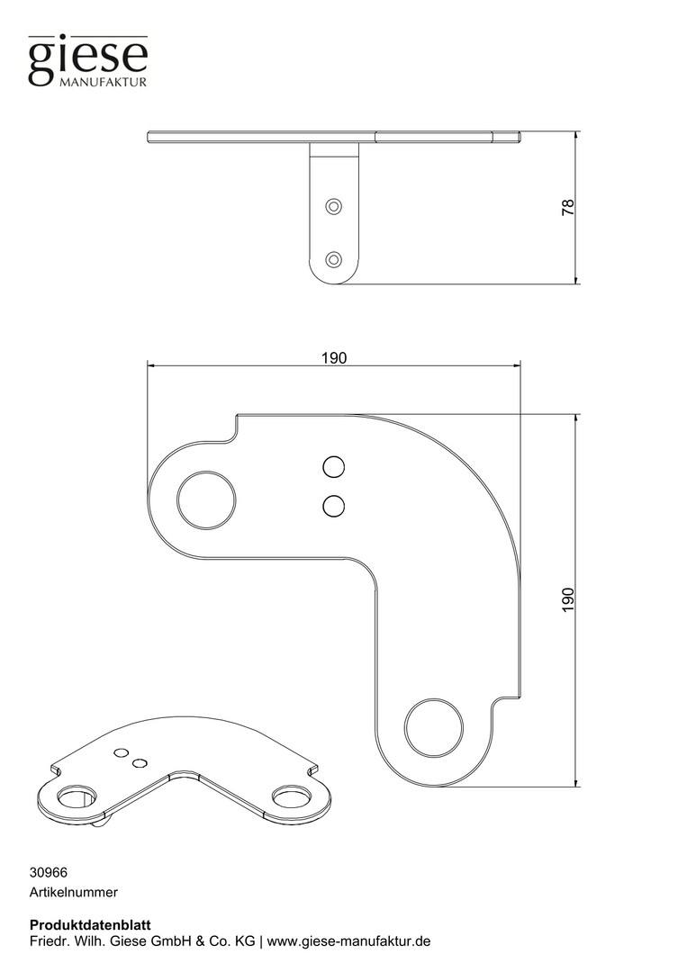 Giese Slimboard Eckmodell 190x190x78mm, mit Halter für Rasierer, Befestigung links, verchromt W359370