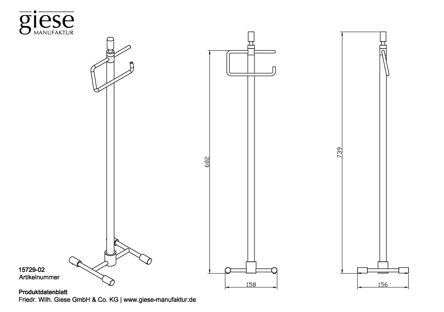 Giese Toilettenpapierhalter Standmodell, 156x158x739mm, verchromt W359505