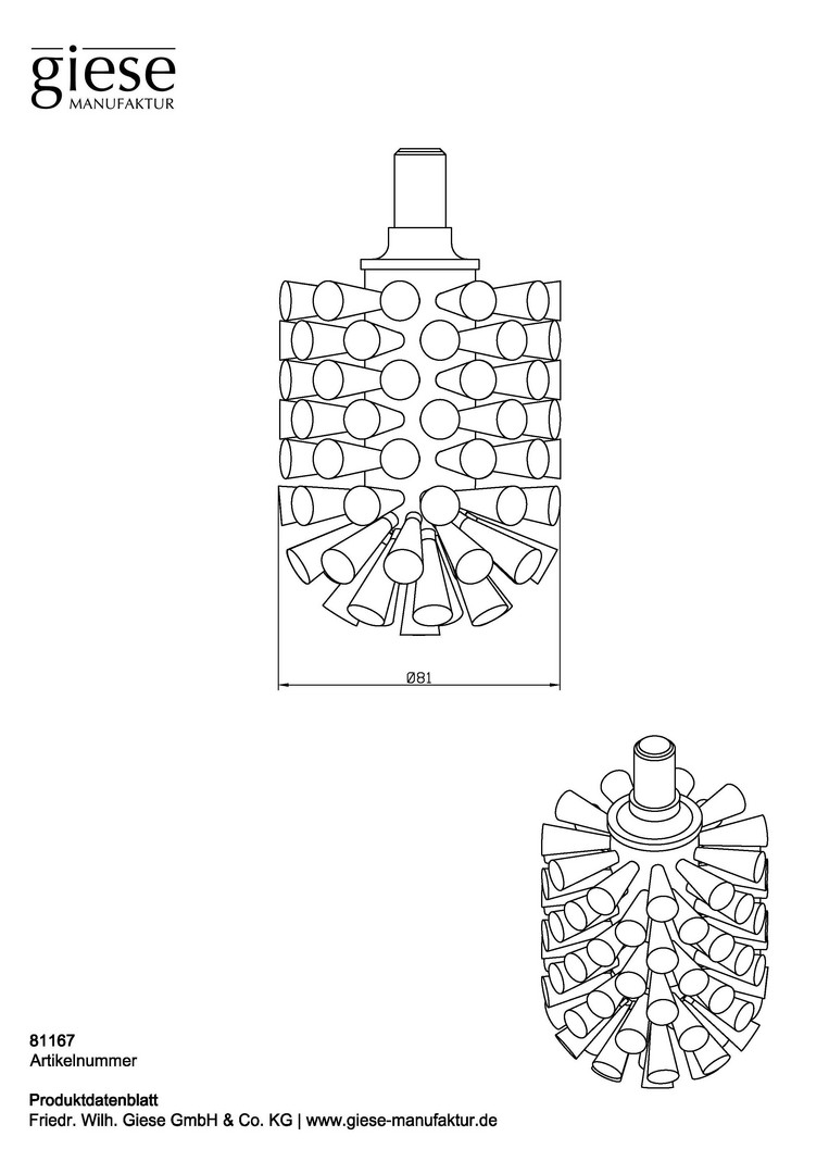 Giese WC-Bürstenkopf weiß, Kunststoffaußengewinde, 81 mm