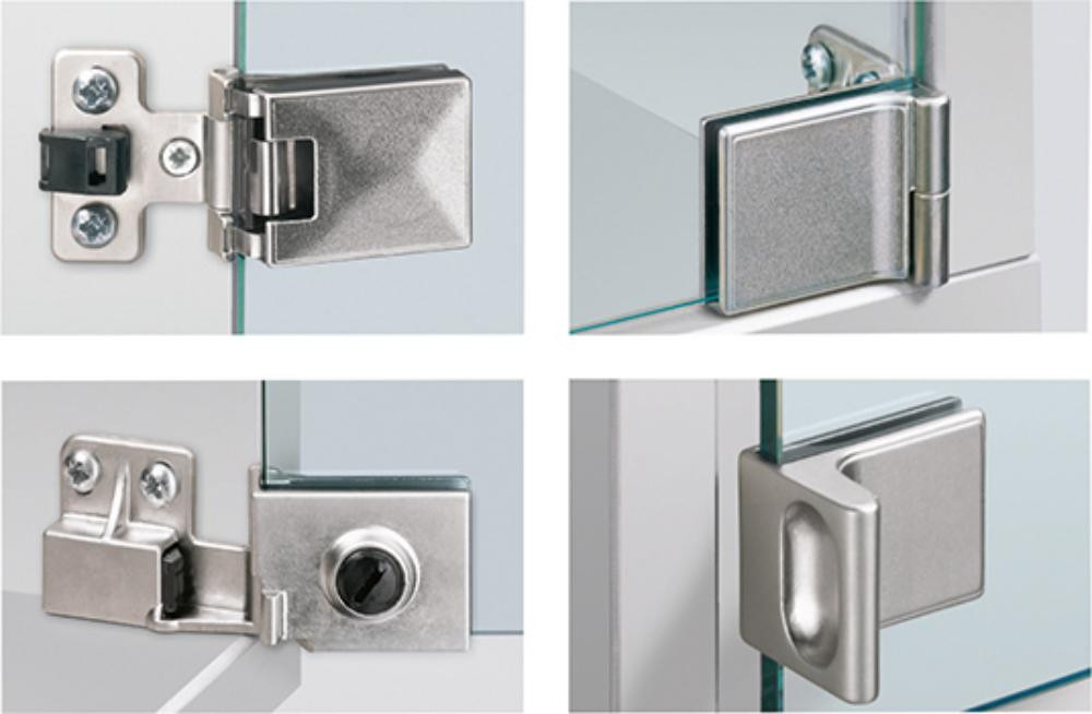 • Glastürscharnier mit Zuhaltung für einliegende Türen
