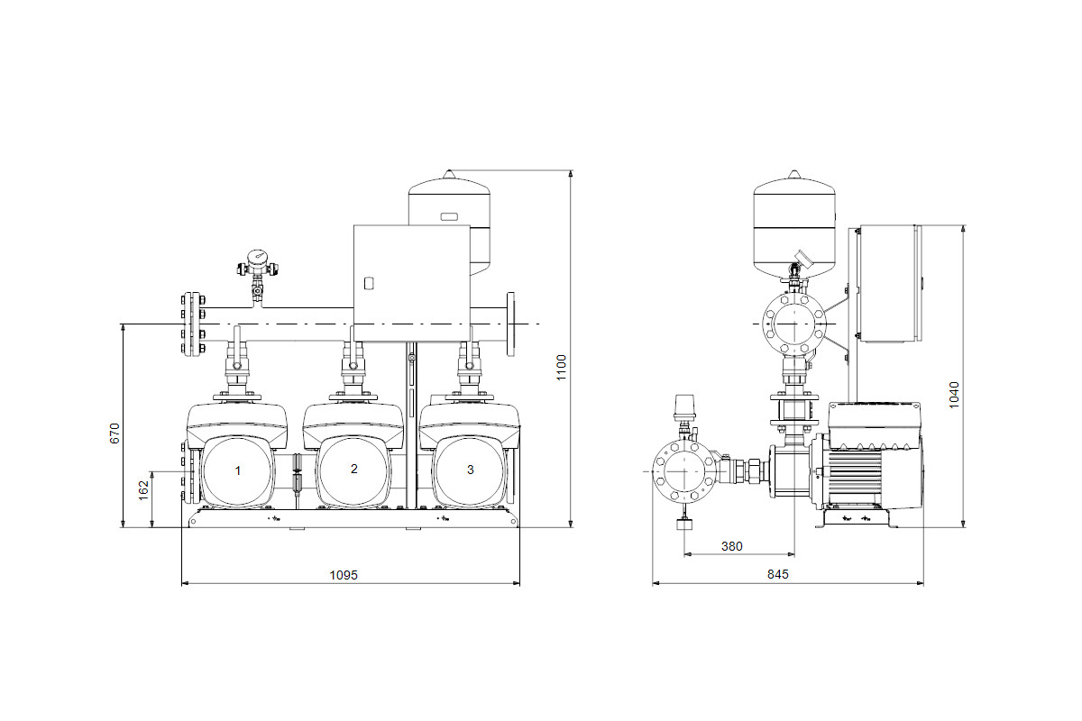 besteht aus 2 bis 4 parallel geschalteten CME-Pumpen, die auf einem gemeinsamen Grundrahmen mit allen erforderlichen Armaturen montiert sind, für die Förderung und Druckerhöhung von Trinkwasser in Mehrfamilienhäusern, Hotels, Industriebetrieben, Krankenhäusern, Schulen usw. bestimmt
