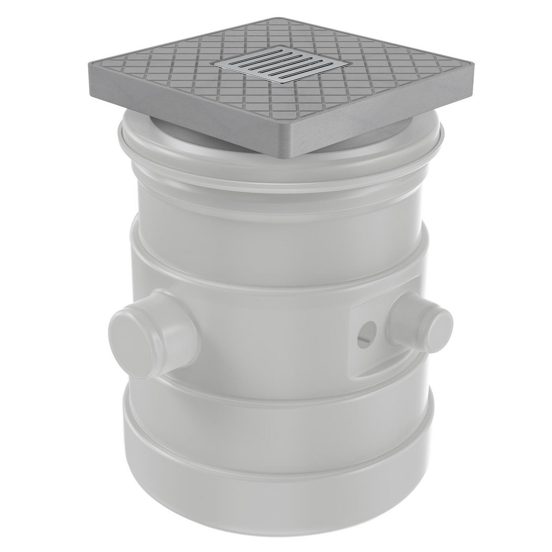Schmutzwassersammelbehälter aus PE in Unterfluraufstellung zur Aufnahme einer Kellerentwässerungspumpe UNILIFT KP 150-A1, UNILIFT KP 250-A1 oder einer Schmutzwasserpumpe UNILIFT AP 12.40.04 A1. bis 12.40.08 A1, Schacht mit Teleskopeinsatz und Schachtabdeckung mit Geruchsverschluss, Einbausatz für UNILIFT KP oder UNILIFT AP 12 bestehend aus Rückschlagklappe, Druckleitung, Wanddurchführung, Druckstutzen, flexiblem Übergangsstück zwischen Pumpe und Druckleitung