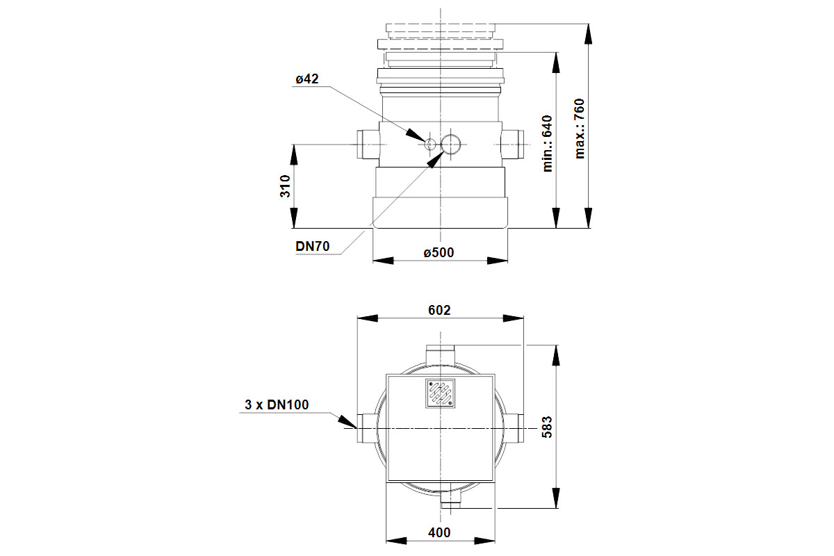 Grundfos Hebeanlage Liftaway B40-1 500 x 770 mm, ohne Pumpe, für UNILIFT AP 12 A1/A3