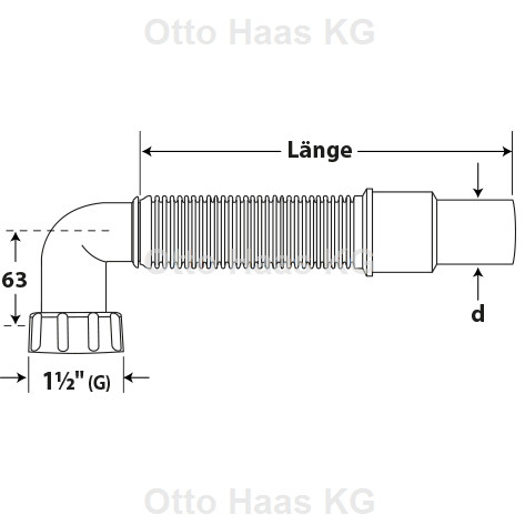 mit Bogen für Siphons, Länge 490 mm, einzeln im Polybeutel verpackt, kürzbar, nach DIN EN 274