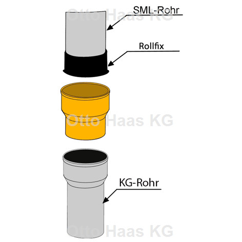 zum Anschluss von KG-Rohren mit Muffe an Gussrohre ohne Muffe unter Verwendung mit Rollfix KG, passend für Guss-Rohre/KG-Rohre, Material aus PVC-U Hart-PVC