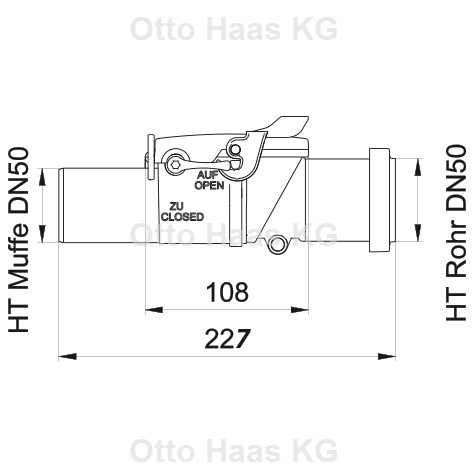 HAAS OHA-Sperrwerk DN 50, gerade, mit Notverschluss, 2 Kunststoffklappen