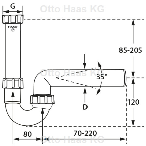 HAAS PP-Kugelgelenksiphon 1 1/2 Zoll, DN 40 & 1 Geräteanschluss, nach DIN