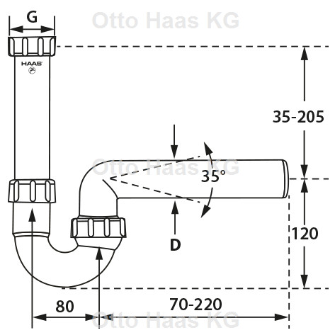HAAS PP-Kugelgelenksiphon 1 1/2 Zoll, DN 40/50, weiss, nach DIN