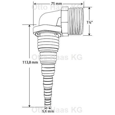 Pumpenanschluss 90° mit Schraubgewinde1¼" für Anschlüsse an Saug- und Druckpumpen, durch kürzen des Schlauchstutzens ist der Verbinder geeignet für metrische und imperiale Schlauchabmessungen von 8,3 bis 33,5 mm, das schlagfeste ABS besticht durch sehr hohe Materialfestigkeit, Abriebfestigkeit, sein geringes Eigengewicht und bietet durch die vorhandenen Rippen eine optimale Verbindung. Durch die vorhandenen Raster wird ein Herausrutschen des Anschlusses erschwert, gute chemische Beständigkeit, Temperaturbereich von 0 °C bis +90 °C und Temperaturbeständigkeit kurzzeitig bis 90 °C, max. Überdruck: 0,8 bar, für Schläuche von 8,3-33,5 mm, PN2 60 °C