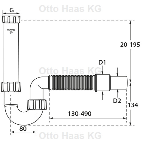 HAAS Spülensiphon DN40/50, 1 1/2", mit flexiblem Schlauch, Polypropylen, weiß