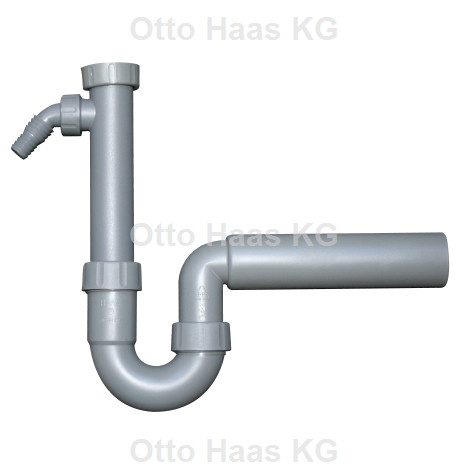 aus schlagfestem Polypropylen, mit 240 mm Ablaufrohr lang und höhenverstellbarem Tauchrohr, mit einem Kombi-Geräteanschluss 3/4" und 1", komplett mit allen Dichtungen, nach DIN EN 274