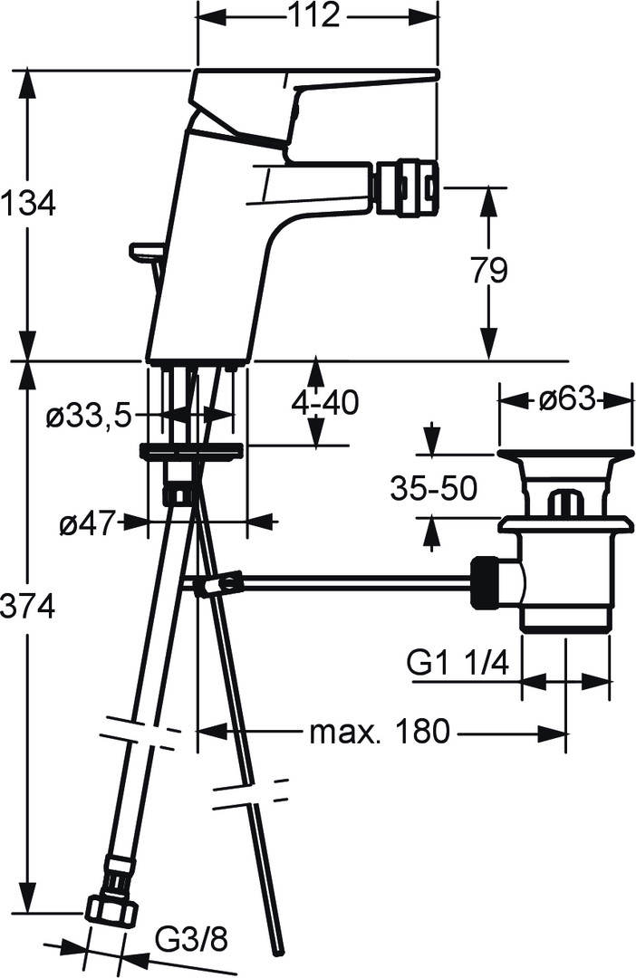 HANSA Bidet-Einhebelmischer HANSATWIST mit Ablaufgarnitur, Ausladung 112mm, chrom