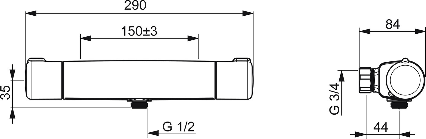 DN 15, eigensicher gegen Rückfließen im Häuslichen Gebrauch (nach DIN EN 1717), Durchfluss bei 3 bar: 19,2 l/min, Spar-Durchfluss bei 3 bar: 11,4 l/min, Heißwasserversorgung: max 80 °C, Eco-Durchfluss, Temperatureinstellgriff, Durchflusseinstellgriff, Sicherheitssperre gegen Verbrühen bei 38 °C, Thermo Cool, S-Anschlüsse, Vertauschte Kalt-/Warmwasseranschlüsse, Abdeckungen G 1/2, Sicherungseinrichtung (EN1717): EB, Oberteil mit keramischen Dichtscheiben zur Wassermengeneinstellung für einen Abgang, Thermostatkartusche zur Temperaturregelung, Rückflussverhinderer, Schmutzfilter
