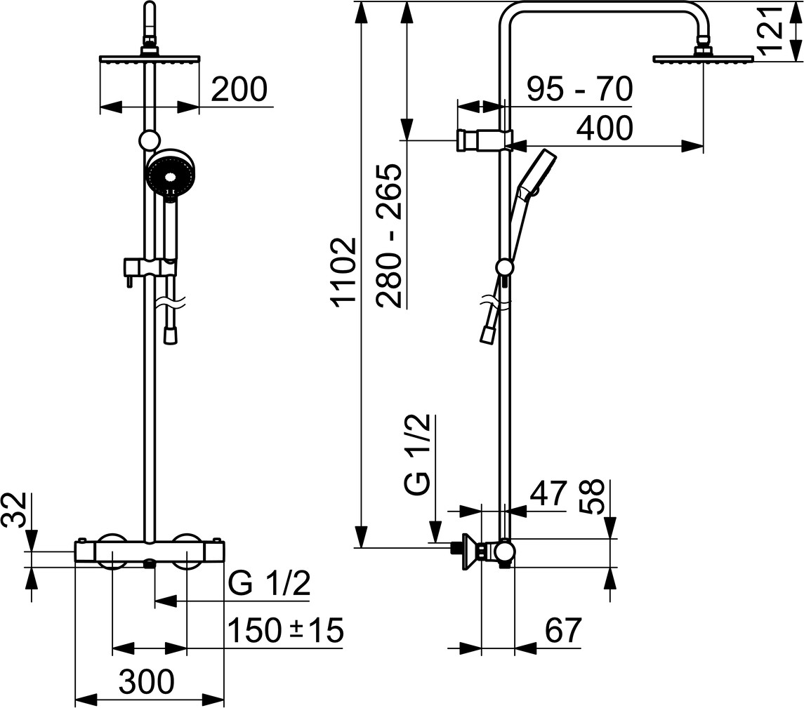 Durchflussmenge 12/13,8 l/min, gemessen bei 3 bar Fließdruck, Heißwasserversorgung max. 80 °C, Armaturenkörper aus entzinkungsbeständigem Messing (DZR), Kopfbrause 200 x 200 mm, integrierter Umsteller mit Absperrung, Handbrause Ø 95 mm, verstellbare Brausestangehalterung, Kopfbrause, Brauseschlauch (1250 mm), Eco-Durchfluss, 3-strahlig, Temperatureinstellgriff, Durchflusseinstellgriff, Sicherheitssperre gegen Verbrühen bei 38 °C, THERMO COOL minimales Erwärmen des Armaturengehäuses, S-Anschlüsse, Abdeckung, Schalldämpfer,(G 1/2), Oberteil mit keramische Dichtscheiben zur Wassermengeneinstellung für einen Abgang, Thermostatkartusche zur Temperaturreglung, Rückflussverhinderer, Schmutzfilter