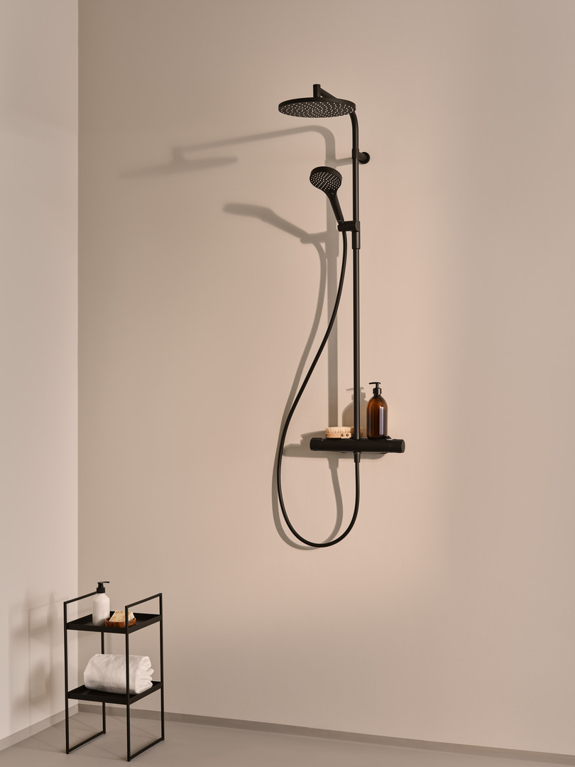 HANSA Duschsystem HANSAVIVA Regenbrause, Thermostat, Wandmontage, matt-schwarz