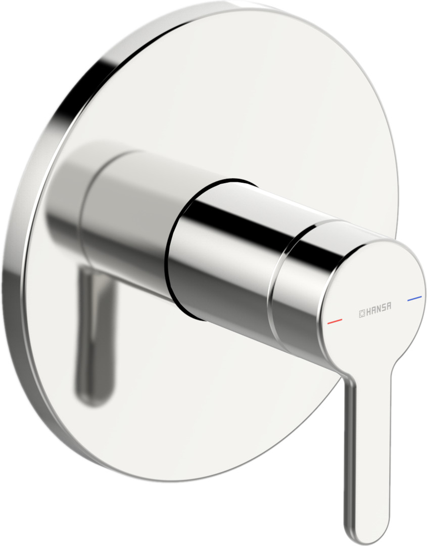 Wandmontage, passend zu HANSABLUEBOX Einbaukörper, Heißwasserversorgung max. 80°C, Arbeitsdruck 0,5-10 bar, Durchfluss bei 3 bar 19,8 l/min, Geräuschklasse I (ISO 3822), Material Messing, BLUECLICK zur einfachen, schraubenlosen Rosettenbefestigung, Funktionseinheit, Befestigung der Funktionseinheit mit Schrauben, Rosettenträger, Rosette rund, Hülse, Ø 4,0 Steuerpatrone mit keramischen Dichtscheiben zur Wassermengen- und Temperatureinstellung, ohne Umstellung, Temperaturbegrenzer, Heißwassersperre einstellbar (im Lieferumfang enthalten), Hebel mit W+K-Kennzeichnung, Einhandbedienhebel/Griff