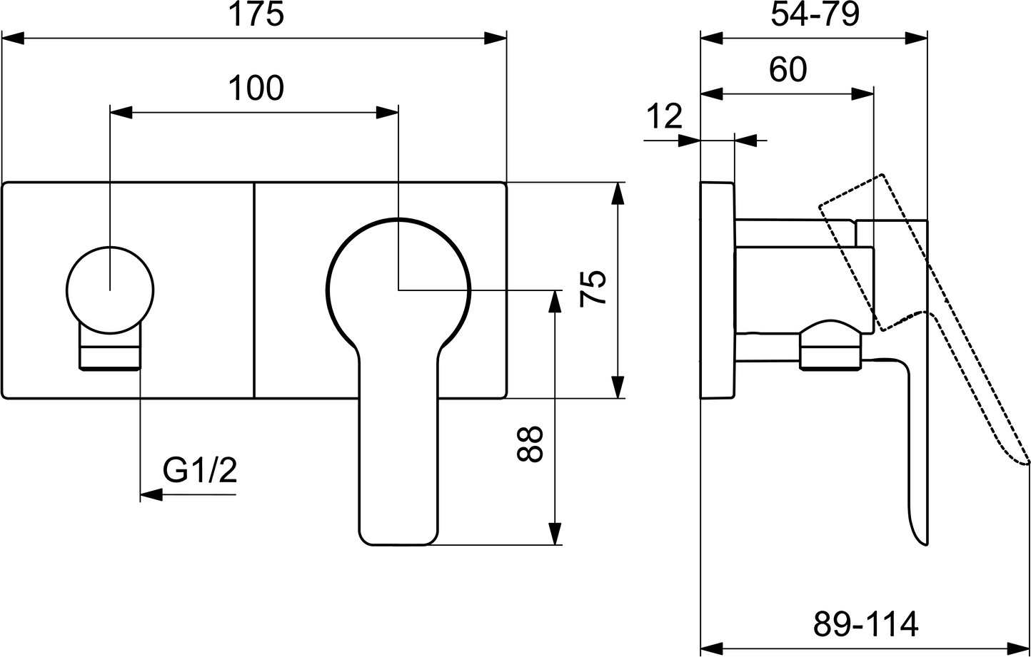 Heißwasserversorgung max. 90 °C, Wandanschlussbogen, Hebel mit W+K-Kennzeichnung, 4 mm Steuerpatrone mit keramischen Dichtscheiben zur Wassermengen- und Temperatureinstellung, Rückflussverhinderer, schraubenlose, eckige Rosette, Hülse