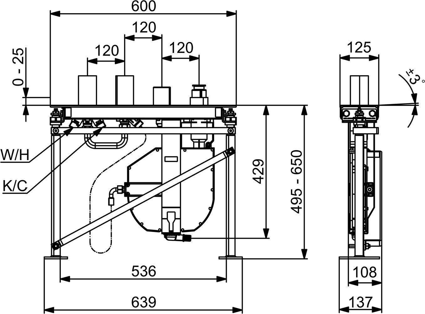 DN 20, Heißwasserversorgung max. 70°C, Arbeitsdruck 0,5-10 bar, Anschlussgröße G3/4, Einbautiefe 495-650 mm, Sicherungseinrichtung (EN1717) EB, Material Messing, eigensicher gegen Rückfießen im häuslichen Gebrauch (nach DIN EN 1717), Leckwasserablauf in Rollbox mit Rückstausicherung, Drehumsteller, druckunabhängig, Ø 4,0 Steuerpatrone mit keramischen Dichtscheiben zur Wassermengen- und Temperatureinstellung, Anschluss über fexible Druckschläuche, Temperaturbegrenzer, Heißwassersperre einstellbar (im Lieferumfang enthalten), ROLLBOX mit automatischer Schlauchrückführung