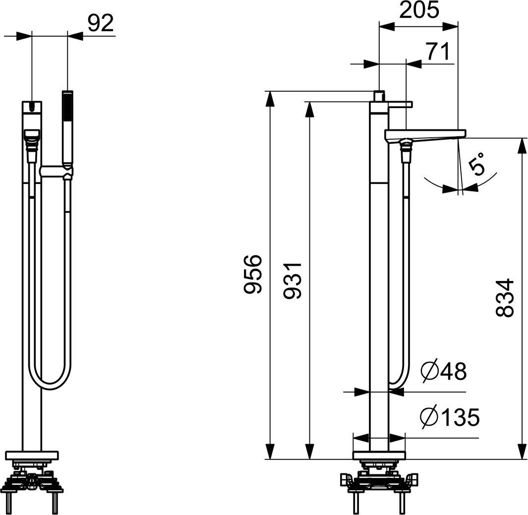 HANSA Wannen-Einhebelmischer HANSALOFT bodenstehend, Ausladung 197mm, chrom