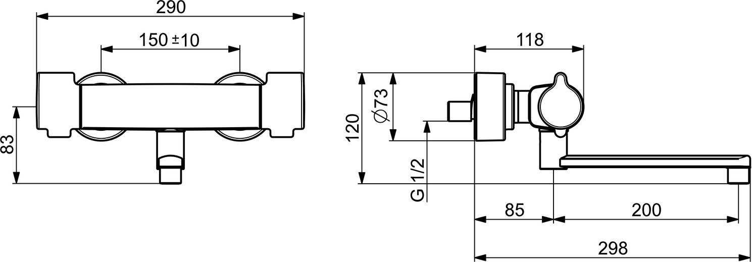 HANSA Waschtisch-Einhebelmischer HANSACLINICA Thermostat, Wandmontage, Ausladung 285mm, chrom