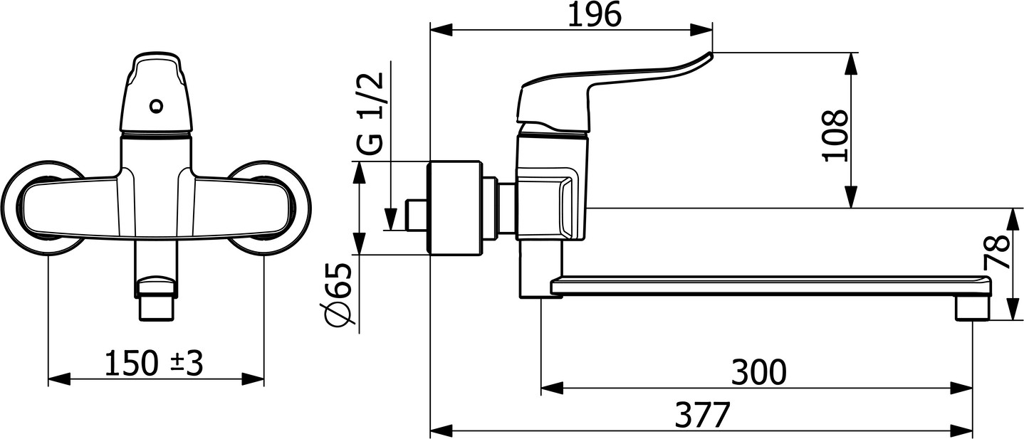 Wandmontage DN 15, Heißwasserversorgung max. +80° C, Arbeitsdruck 0.5 - 10 bar, Durchfluss bei 3 bar (mit Begrenzer): 10.2 l/min, Anschlussgröße G 1/2" Schwenkbereich 120° (60° / 0°), Ausladung 377 mm, Installationsabstand 150 ± 15 mm, Sicherungseinrichtung (EN1717) AA, Geräuschklasse I (ISO 3822), DVGW: DW-6506DL0556, Material aus Messing, KIWA: K6116/08, EPD: S-P-06391, ABP: PA-IX 29901/IA, Schmutzflter, Ø 4.0 Steuerpatrone mit keramischen Dichtscheiben zur Wassermengen- und Temperatureinstellung, Schwenkbarer Auslauf, Anschlag herausnehmbar, Auslaufprofl, gezogen, ohne silikonhaltige Fette, S-Anschlüsse, Abdeckung(en), mit integrierter Vorabsperrung, Schalldämpfer, Rosetten 3-fach abgedichtet, Bedienungshebel lang, Hebel mit W+K Kennzeichnung, Einhandbedienhebel/Griff, Armaturenkörper aus entzinkungsbeständigem Messing (DZR), Wasserwege ohne Nickelbeschichtung, Temperaturbegrenzer, Heißwassersperre einstellbar (im Lieferumfang enthalten), kristallklarer Laminarstrahl