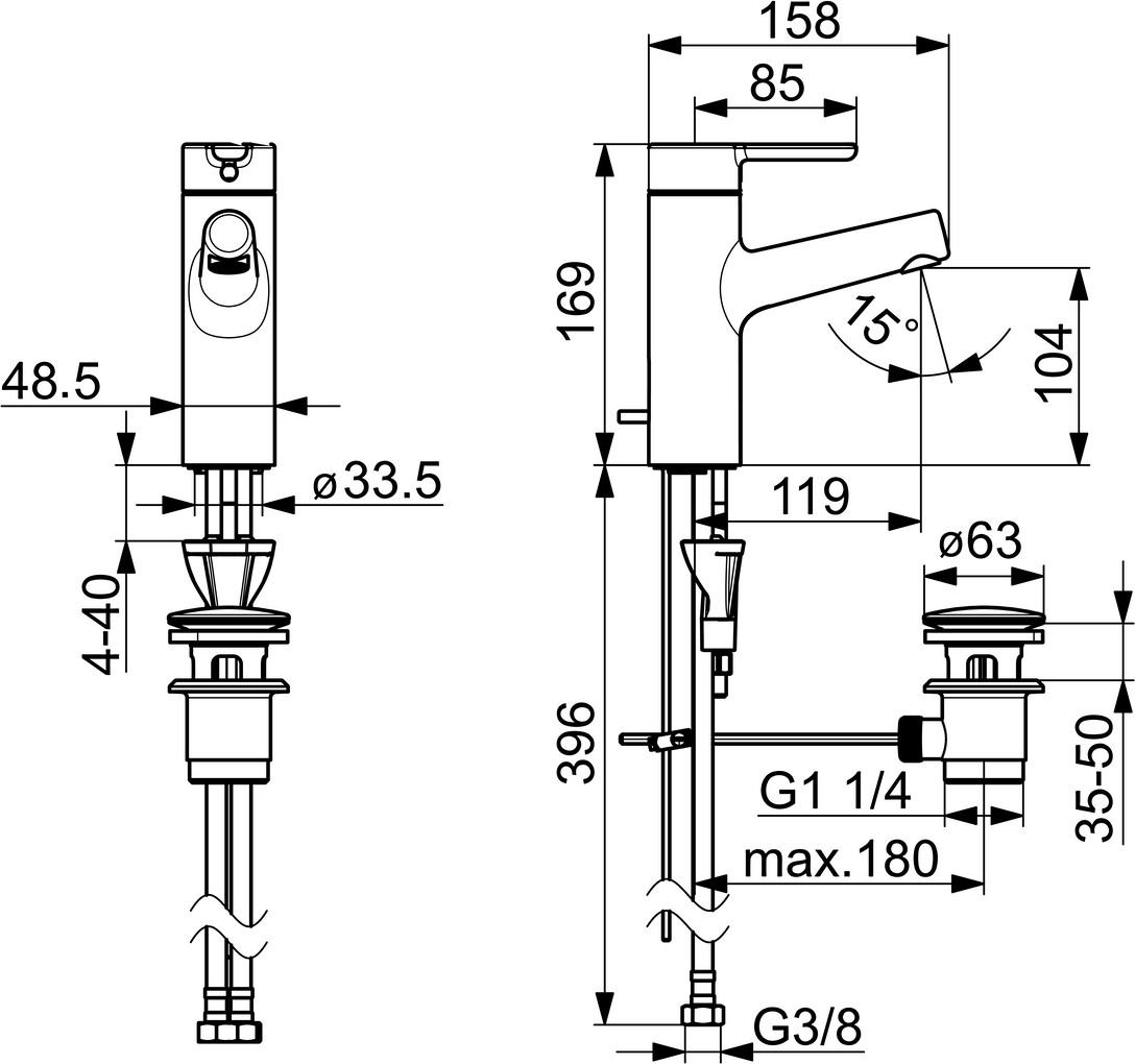 HANSA Waschtisch-Einhebelmischer HANSADESIGNO Style Hebel oben, mit Zugstangen-Ablaufgarnitur, Ausladung 119mm, chrom