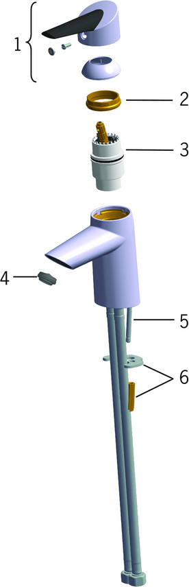 DN 15, Durchflussmenge 9 l/min, Spar-Durchflussmenge 4,8 l/min, gemessen bei 3 bar Fließdruck, Heißwasserversorgung max. 80 °C, Eco-Durchfluss, Easy-Grip Bedienungshebel, Eco-Funktion für die Wassermenge, Hebel mit W+K-Kennzeichnung, Temperaturbegrenzer, Heißwassersperre einstellbar, Anschluss über flexiblen Druckschläuche G 3/8, Ø 4 mm Steuerpatrone mit keramischen Dichtscheiben zur Wassermengen- und Temperatureinstellung, feststehender Auslauf, Cache-Strahlregler ohne Mundstück direkt in den Armaturenauslauf geschraubt
