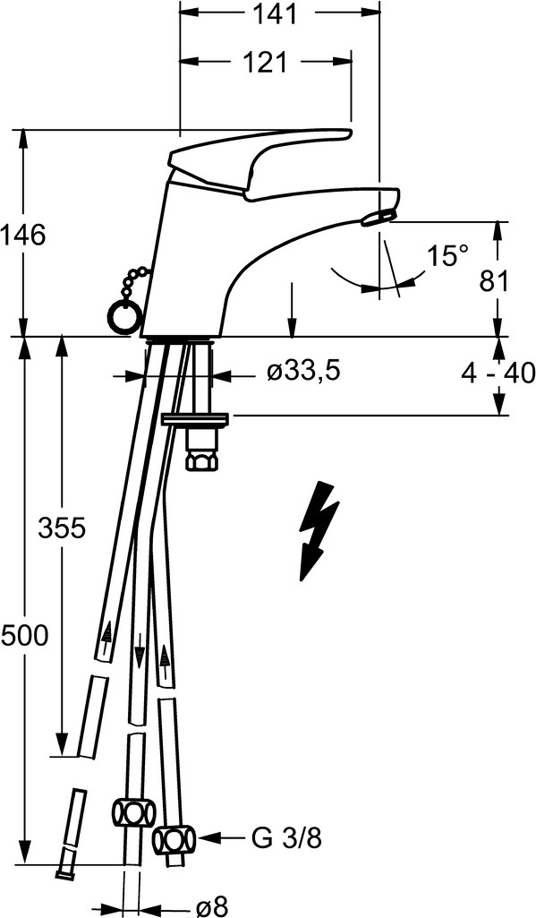 DN 15, Niederdruck, für offene Heißwasserbereiter, Heißwasserversorgung max. 80°C, Arbeitsdruck 0,5-5 bar, Anschlussgröß: Ø 8 mm, Ausladung 141 mm, Sicherungseinrichtung (EN1717) AA, Geräuschklasse I (ISO 3822), Material Messing, Ø 4,8 Steuerpatrone mit keramischen Dichtscheiben zur Wassermengen- und Temperatureinstellung. Wasserbremse bei ca. 60% Wassermenge, Temperaturbegrenzer, Heißwassersperre einstellbar (im Lieferumfang enthalten),Hebel mit W+K-Kennzeichnung, Einhandbedienhebel/Griff, feststehender Auslauf, Armaturenkörper aus entzinkungsbeständigem Messing (DZR), Rapid-Montagesystem Kristallklarer Laminarstrahl, Strahlregler, Anschluss über Kupferrohre