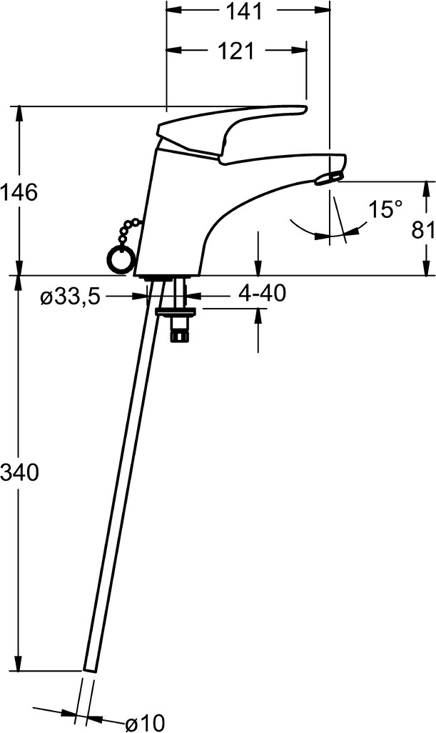 HANSA Waschtisch-Einhebelmischer HANSAMIX ohne Ablaufgarnitur, versenkbare Kette, Ausladung 141 mm, chrom