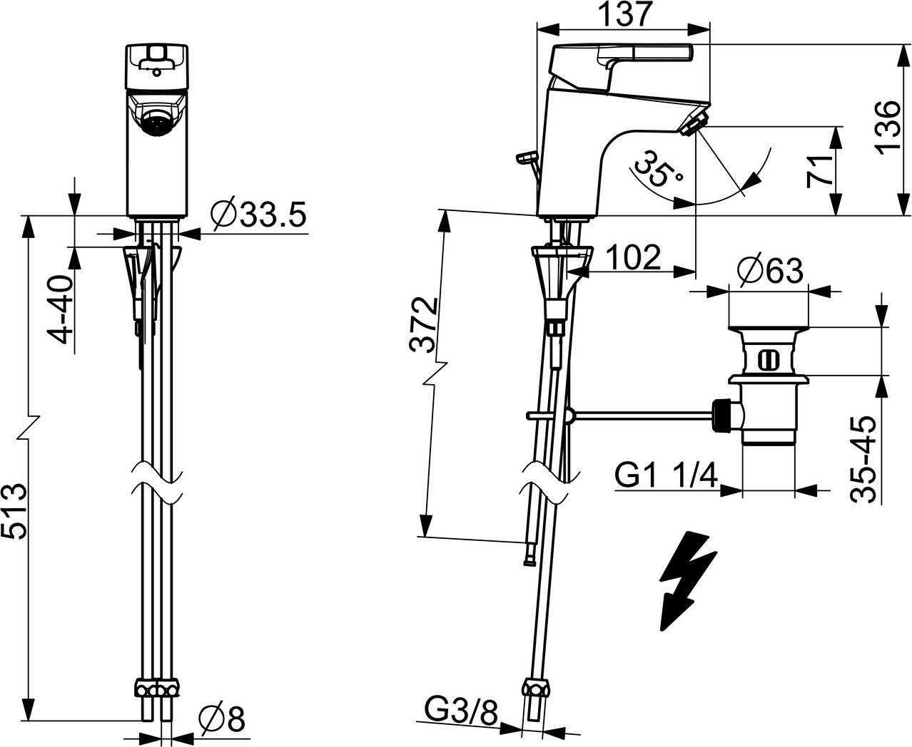 DN 15, Niederdruck, für offene Heißwasserbereiter, 3-S-Installation, Durchfluss bei 3 bar (mit Durchflussbegrenzer) 6 l/min, Heißwasserversorgung max. 80 °C, Hebel mit W+K-Kennzeichnung, Temperaturbegrenzer, Heißwassersperre einstellbar, G 3/8, Ø 3,5 mm classic-Steuerpatrone mit keramischen Dichtscheiben zur Wassermengen- und Temperatureinstellung, feststehender Auslauf, kristallklarer Laminarstrahl