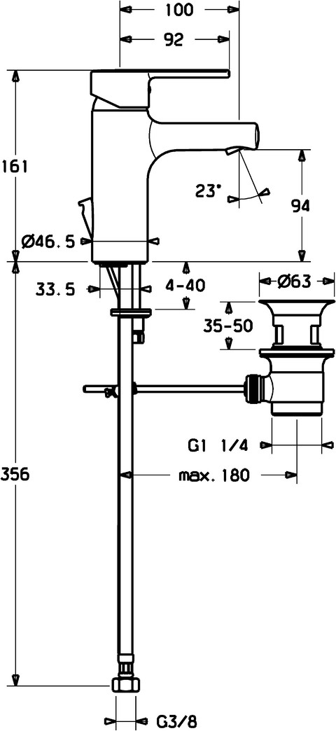 | Art der Ablaufgarnitur | Pop-up-Ventil mit vertikalem Hebel |