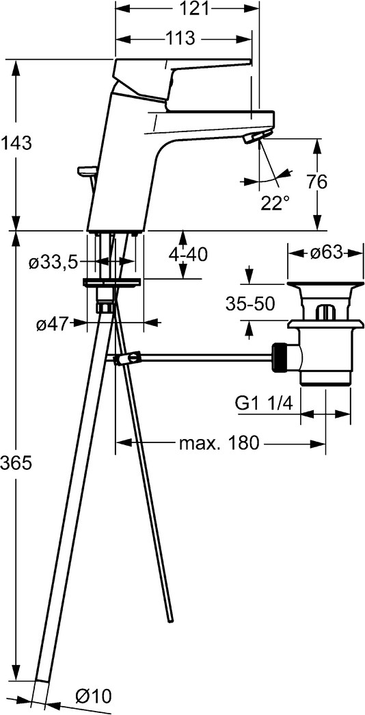 DN 15, Durchflussmenge 6 l/min, gemessen bei 3 bar Fließdruck, Heißwasserversorgung max. 80 °C, Armaturenkörper aus entzinkungsbeständigem Messing (DZR), Rapid-Montagesystem, Hebel mit W+K-Kennzeichnung, Temperaturbegrenzer, Heißwassersperre einstellbar, Ablaufgarnitur mit Zugstange, Ø 3.5 classic Steuerpatrone mit keramischen Dichtscheiben zur Wassermengen- und Temperatureinstellung, feststehender Auslauf, Strahlregler PCA konstante Durchflussleistung unabhängig vom Fließdruck