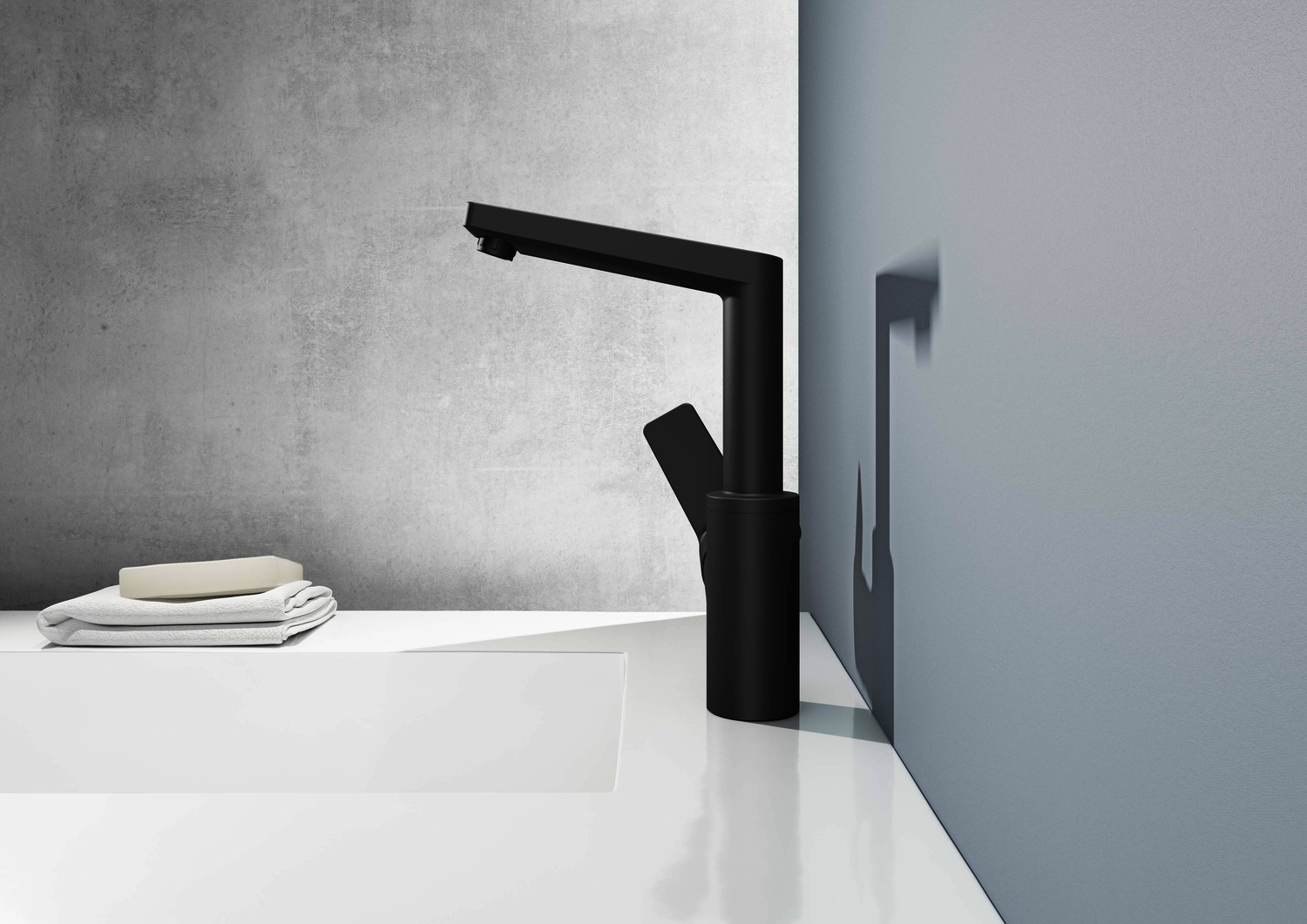 HANSA Waschtisch-Einhebelmischer HANSATWIST Hebel seitlich, ohne Ablaufgarnitur, Ausladung 130mm, mattschwarz